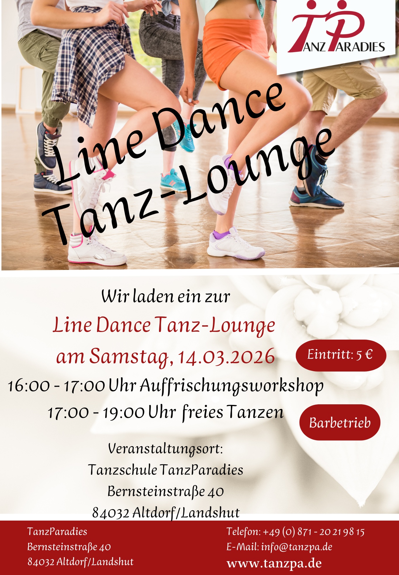 | 14.03.2026 | 16:00 – 17:00 Auffrischungsworkshop 17:00 – 19:00 freies Tanzen | Eintritt 5 € |